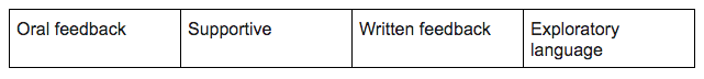 I’ll expand a little more on exploratory language and the oral feedback procedure here below. But, before I do that, I wanted to write about my time commitment to this course, something a number of people have been asking about. When you sign up for this course, they say it takes about 4 hours a week to complete, and to be fair it has been around that (some weeks I spent more, but that is because I like to delve deeper and research). I will say that I have been working full time as well as planning and delivering training sessions in the academy where I work – I feel like I’ve had a lot going on. I guess my advice for anyone who is thinking about taking on this course at a later stage is to ensure that you set aside the time to complete the content as well as time to synthesise the information and get your thoughts together. With this in mind, I would say the rough ‘hours per week’ would be around 6, but that’s just me!