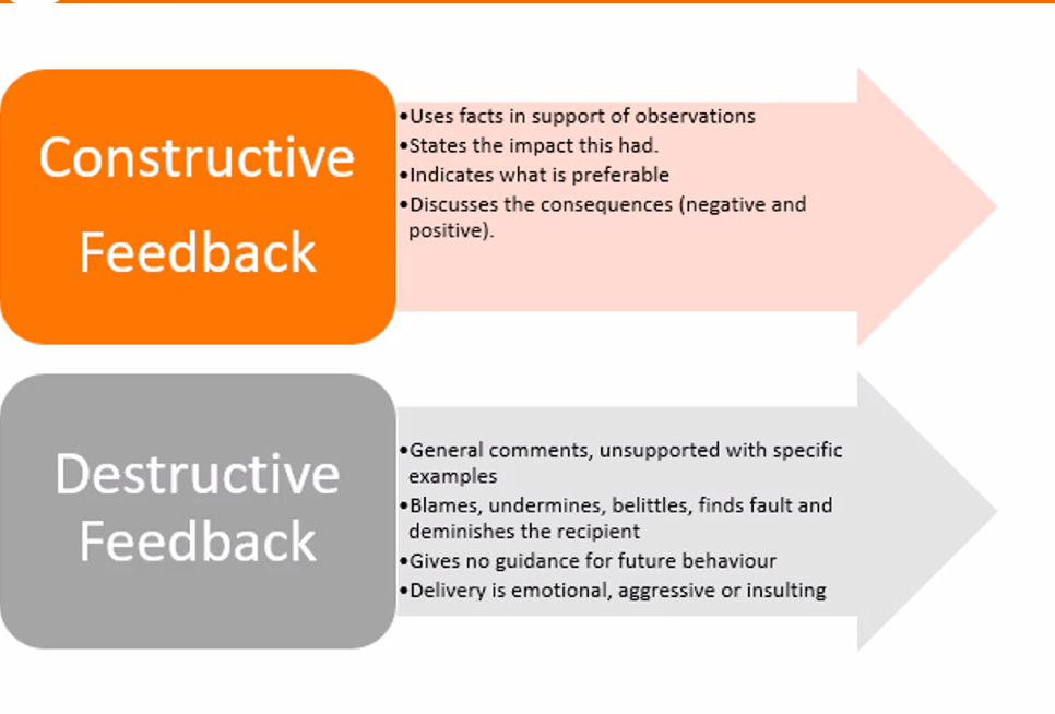 We looked at constructive and destructive feedback, and some examples of what these could be.