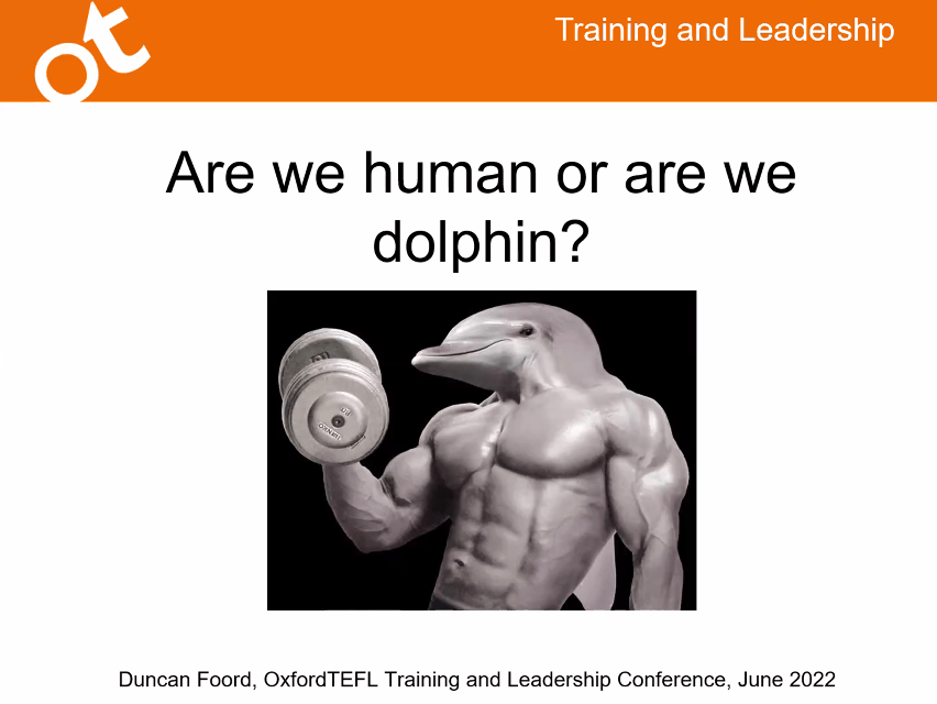 Through Duncan’s plenary, he looked at ‘dolphin’ trainers, and then made comparisons between ‘trainers’ in ELT and leaders. He then asked us to think about the difference between the training and leadership by presenting a list of teacher actions, which we had to classify as ‘training’ or ‘leadership’: