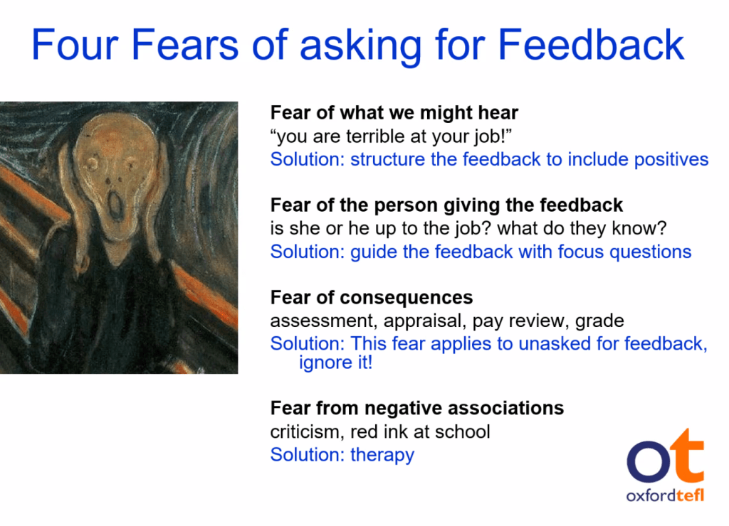 He also mentioned some reasons why we might not seek feedback, and some possible solutions: