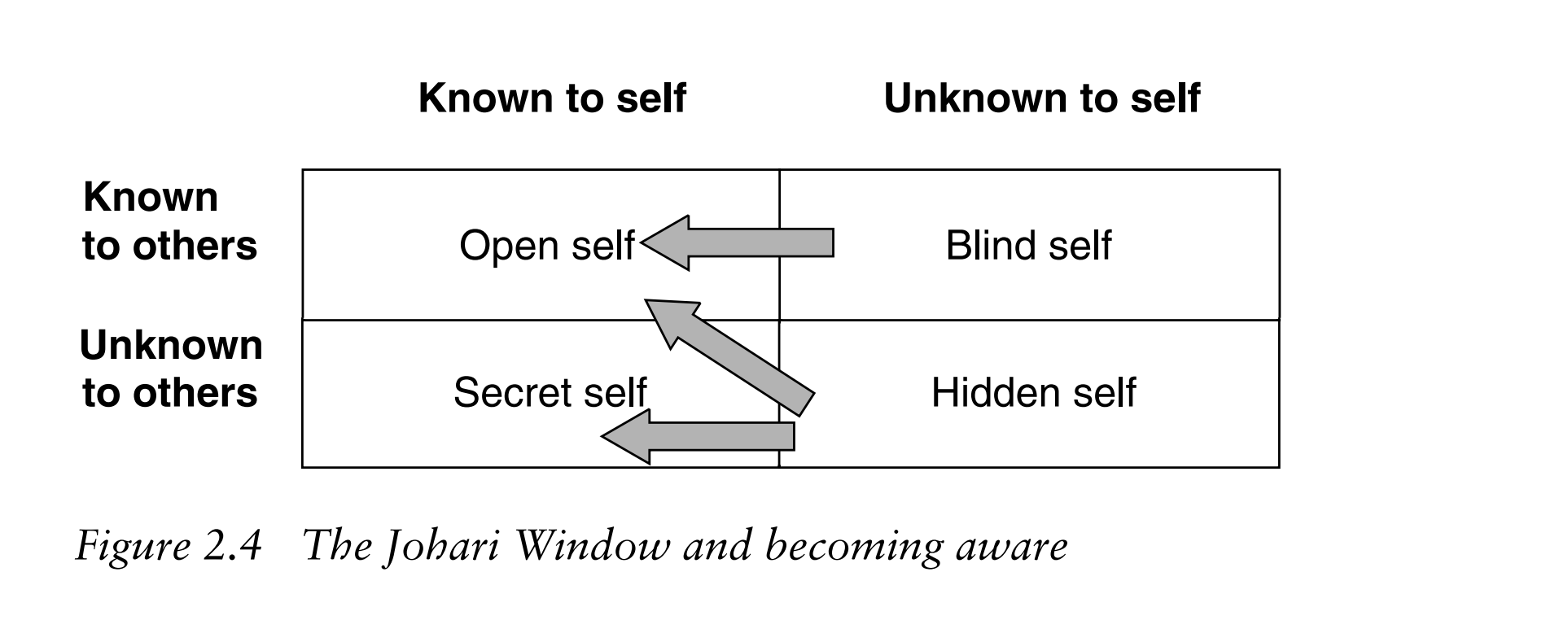- Open self: “We can work with teachers on the open self in two ways: by encouraging teachers to share their success with colleagues and by addressing areas for improvement with the individual teachers, if they agree that some development is needed” (Bailey, 2006, p.39).